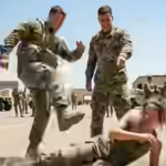 The two male soldiers, caught completely off guard and now covered in lunch, didn’t hesitate to respond. One jumped up, knocking over chairs, while the other grabbed his own tray and retaliated, launching a counterattack that turned the corner of the dining facility into a messy battlefield. Trays clattered, soldiers ducked, and cafeteria staff scrambled to intervene as food flew in multiple directions. What began as a personal trigger quickly escalated into a chaotic scene reminiscent of a high-school cafeteria brawl, but with combat-trained adults in uniform.