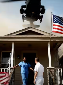 Two UH-60 Black Hawks— matte black, no markings—descended into the cul-de-sac like predators. Dust and leaves swirled in tornadoes beneath them. One touched down on the empty lot across the street; the other hovered, door gunner visible in the open side.