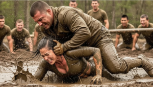 Joel stood slowly, the mud clinging to her like a second skin. Blood dripped from her chin, staining the front of her cammies a darker shade. The laughter died in throats as forty-seven pairs of eyes watched her rise without a sound—no gasp, no curse, no plea for help.