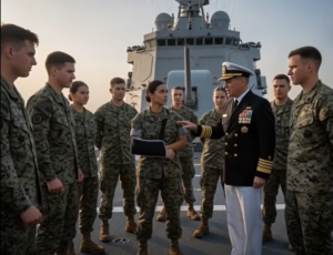 Admiral Callahan’s office occupied the highest floor. Three stars adorned his shoulders, sixty-two years behind him, medals beyond counting. A man who saw himself as untouchable. The wide windows framed the harbor—the very waters once engulfed in flames.
