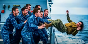 He looked down at her hauling a half-drowned Marine behind her and yelled to the deck above, “She’s done! You’re finished, Commander!”