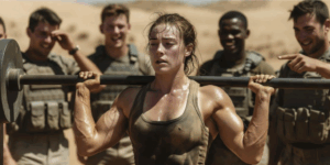 Later, on the rope climb, she moved like gravity had forgotten her. Thirty feet up, tap the beam, thirty feet down — calm, controlled. The recruits fell silent, then resentful, then cruel again.