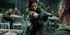 Reeves had recovered, shoving Dawson’s groaning body aside, bringing his own pistol to bear. Maya was already inside his reach. She trapped the gun arm, rotated her hips, and executed a perfect harai-goshi throw. Reeves flew over her shoulder, slammed onto the mess-hall table, plates and silverware scattering like shrapnel. Before he could roll, her boot pinned his wrist to the floor and the confiscated M18 pressed under his chin.