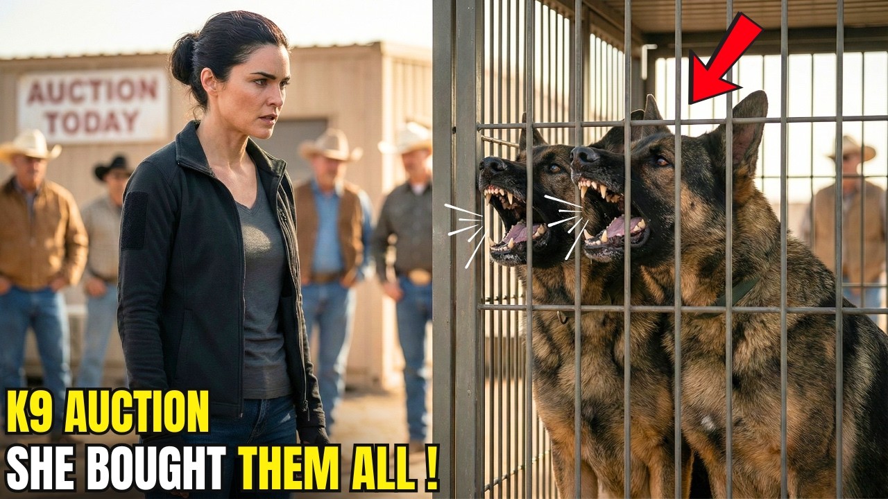 Dead silence. Then laughter exploded. Holt leaned over the podium, smirking. “Sweetheart, you got twelve grand in that tip jar? These ain’t rescue mutts. They’re military property. Final disposal.” A buyer in a leather jacket sneered, “Go home, waitress. This is a man’s game.”