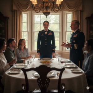 Twenty people crammed around it: parents, Ethan and his perfect wife Claire, aunts, uncles, cousins. And one surprise guest—General Harlan Brooks, U.S. Army, retired. Old family friend from Dad’s National Guard days. Silver hair, dress blues under a cardigan, four stars still gleaming on his shoulder boards from some formal event earlier.