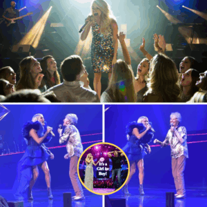As Carrie reached the chorus, the energy in the arena shifted. From the wings emerged Dolly Parton, her presence as dazzling as her rhinestone-studded outfit. The crowd exploded into applause, some fans leaping to their feet as they realized what was happening. Dolly, with her trademark warmth and charisma, joined Carrie mid-song, her voice blending effortlessly with Carrie’s in a harmony that felt both timeless and transcendent. The surprise was perfectly orchestrated, yet it was what happened next that elevated the performance into something truly legendary.