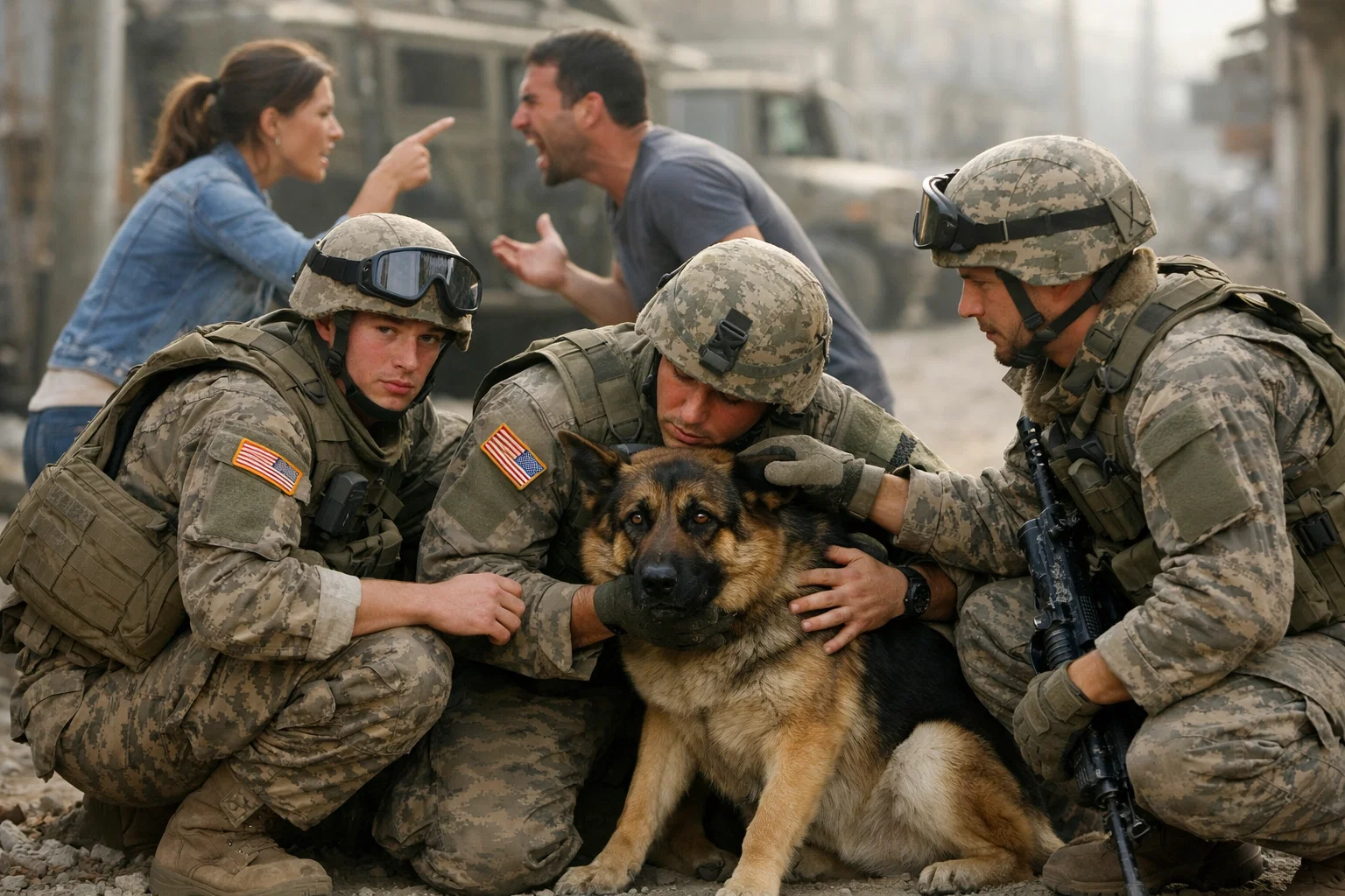 The argument escalated briefly, but Ethan’s uniform and steady presence seemed to defuse it. The couple eventually stormed off in opposite directions, leaving the dog with him. Ethan checked for tags—none. It was probably a stray they’d taken in and then fought over. He couldn’t just leave it there. He carried the pup to a shady spot, gave it water from his canteen, and talked softly until it stopped shaking. By the time he realized how late he was, drills had started twenty minutes ago.