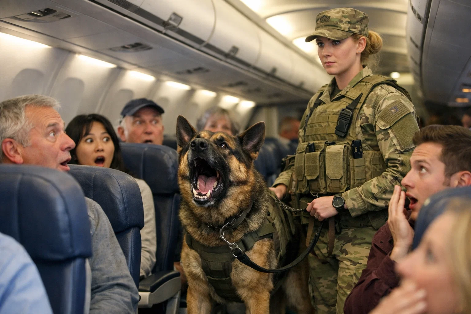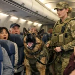 In three thousand flights, that was the day a machine full of strangers learned what real discipline looks like—and it came from a dog who’d seen war.